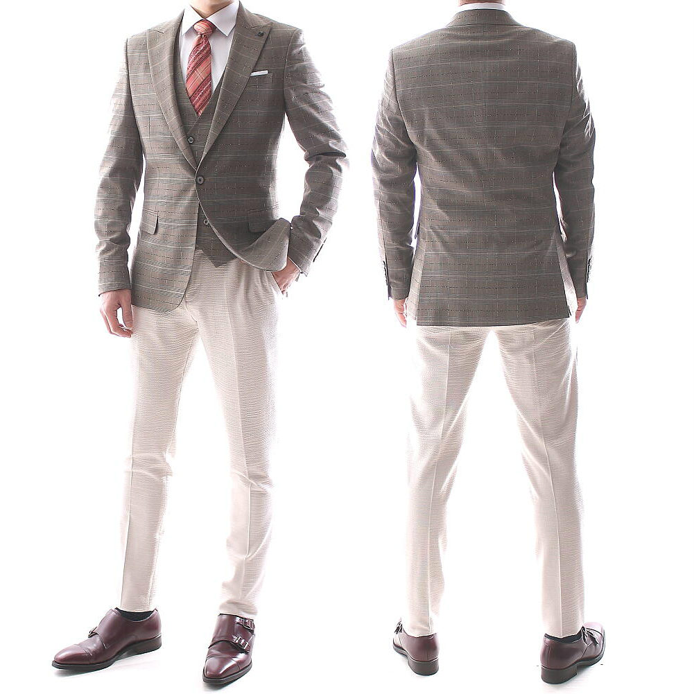 楽天市場 テーラードジャケット ジレ セットアップ グレージュグレンチェック ブレザー メンズ タイト スリムフィット ジャケパン 春 秋 冬 大きいサイズも入荷 ビジネスジャケット bin 1 limited